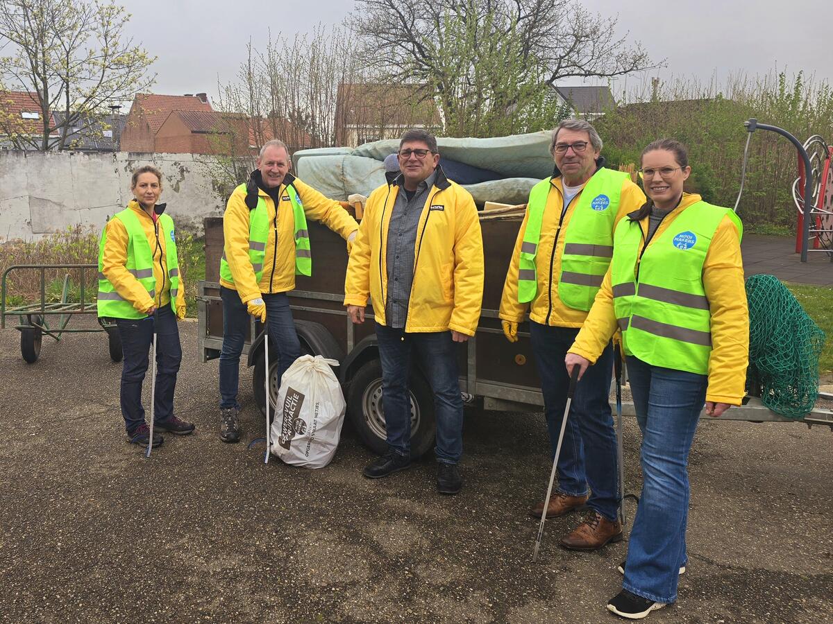 Gewapend met fluohesjes, grijpstokken en gele handschoenen trok de ploeg eropuit. "De jaarlijkse lenteschoonmaak is een initiatief waar we met plezier aan deelnemen en onze steun aan verlenen. Daarmee willen we ook onze waardering tonen voor de vele mooihouders die het hele jaar door zwerfvuil ruimen in onze stad”, stelt N-VA-parlementslid Allessia Claes uit Schoonderbuken.